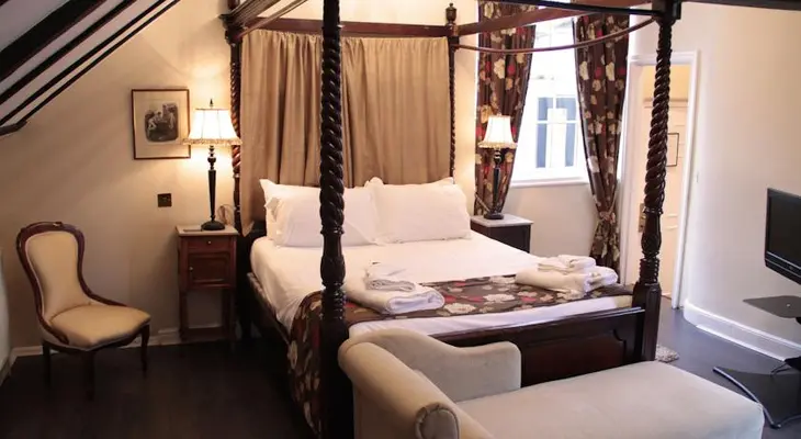 “Directly opposite the minster is this comfortable and atmospheric hotel complete with gas lamps and log fires.”
