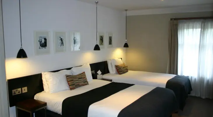 "The impressively designed rooms are among the most beautiful in the city, with even the smallest winning on the style stakes with murals of a relaxed Churchill and black-tiled bathrooms. "