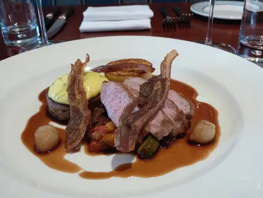 “Their menu changes frequently but could include pan-fried halibut with a saffron-and-mussel risotto, or else leg of black-faced lamb with savoy cabbage.”