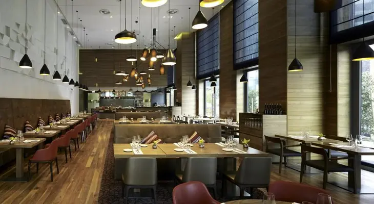 “All rooms feature a svelte mixture of charcoal, chocolate and ochre surfaces and fabrics; big windows provide both plenty of light and a a sense of outside bustle.”