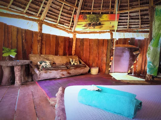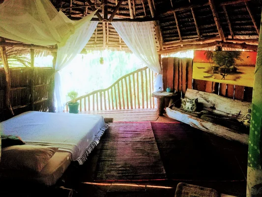 “Closely linked to Airborne Kite Centre, this delightful place has rooms in a large house and safari tents (with private bathroom), plus a tree house, all in a large garden under shady trees.”
