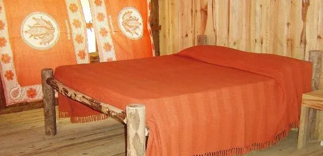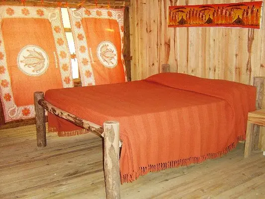 “Accommodation in a mix of rustic and slightly rundown thatched and wooden bungalows with bathrooms, one nicer suite and meals.”