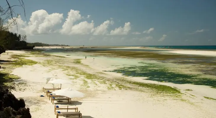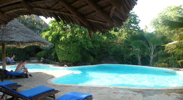 "A boutique lodge with 12 organically designed villas offering barefoot luxury, built on a coral cliff beside the twinkling waters of Menai Bay, which teem with bottlenose and humpback dolphins." Full review