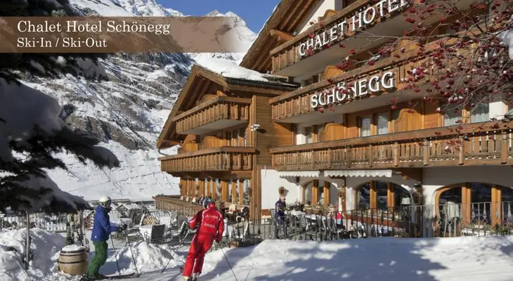 “The four-pearl Chalet Hotel Schoenegg offers upscale comfort in the alpine village of Zermatt.”