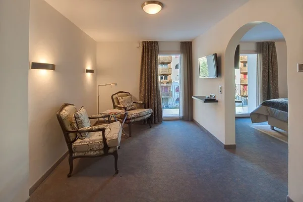 Choose from a contemporary room or one of the more characterful "rustic" junior suites in the original chalet, with their old-world wood beams.