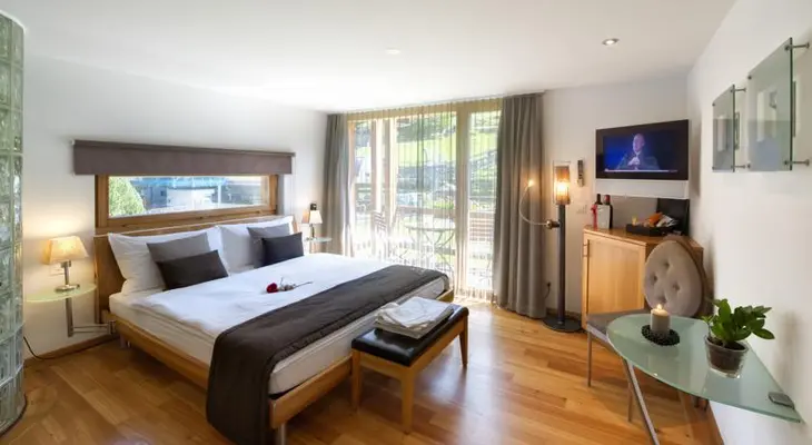 "The decor is modern with Alpine infuences, including big picture windows and local larch wood. Suites have south-facing balconies." Full review