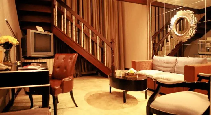“Large columns and a grand staircase in the lobby give this hotel a majestic opera house feel. Well-appointed rooms have wood paneling and bay windows. Swimming pool and fitness facility free.”