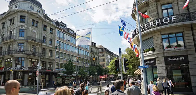 "One of Zurich's must-dos is a stroll along the sleek storefronts of Bahnhofstrasse. Stretching across Old Town from Hauptbahnhof station to Lake Zurich...features a variety of high-end shops" Full review