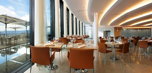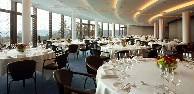 “Situated high above Zurich, with a sweeping forest and a golf course for company, it offers breathtaking views of the city, the lake, and even—on clear days—the Alps.”